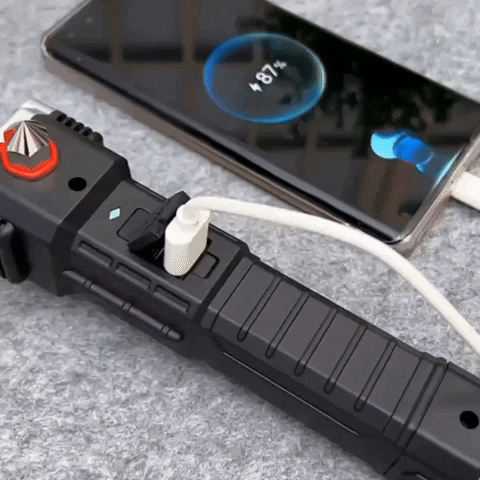 ✅Disfruta tus viajes , campamentos o noches en familia con total tranquilidad. La Super Linterna LED 4 en 1 es mucho más que una linterna : ilumina intensamente , corta cinturones , rompe vidrios y carga tu celular gracias a su puerto USB integrado.